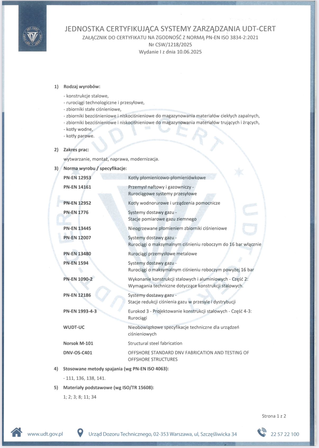 Wykorzystujemy technologie spawania dla stali węglowych, niskostopowych, kwasoodpornych oraz nierdzewnych. Pozwala nam to realizować projekty o zróżnicowanych wymaganiach materiałowych i technicznych.